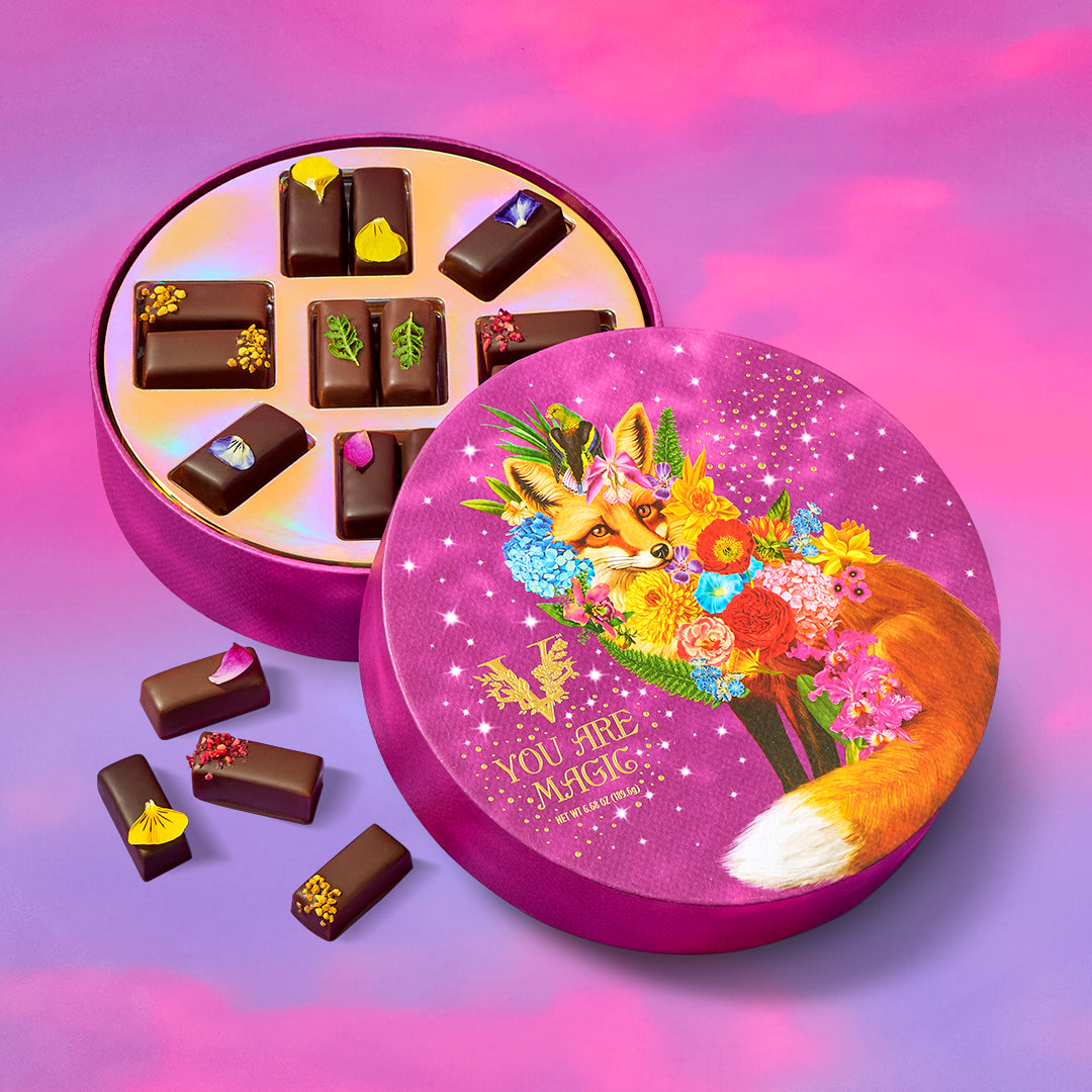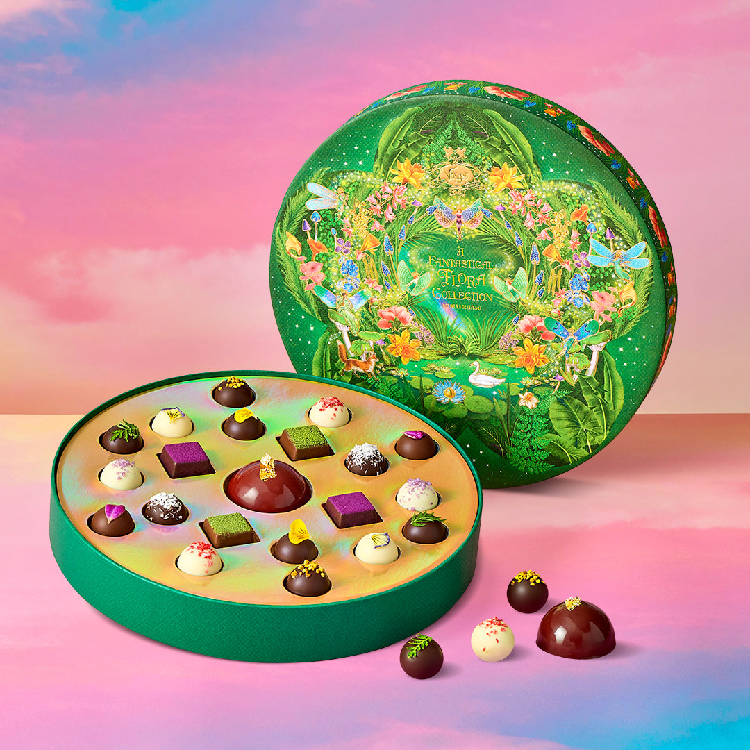The Fantastical Flora Truffle Ensemble celebrates seasonal flowers, fruits and plants from all over the world. Each ingredient uses its magic to evoke nostalgia and, in every bite, remind us that renewal is always possible.