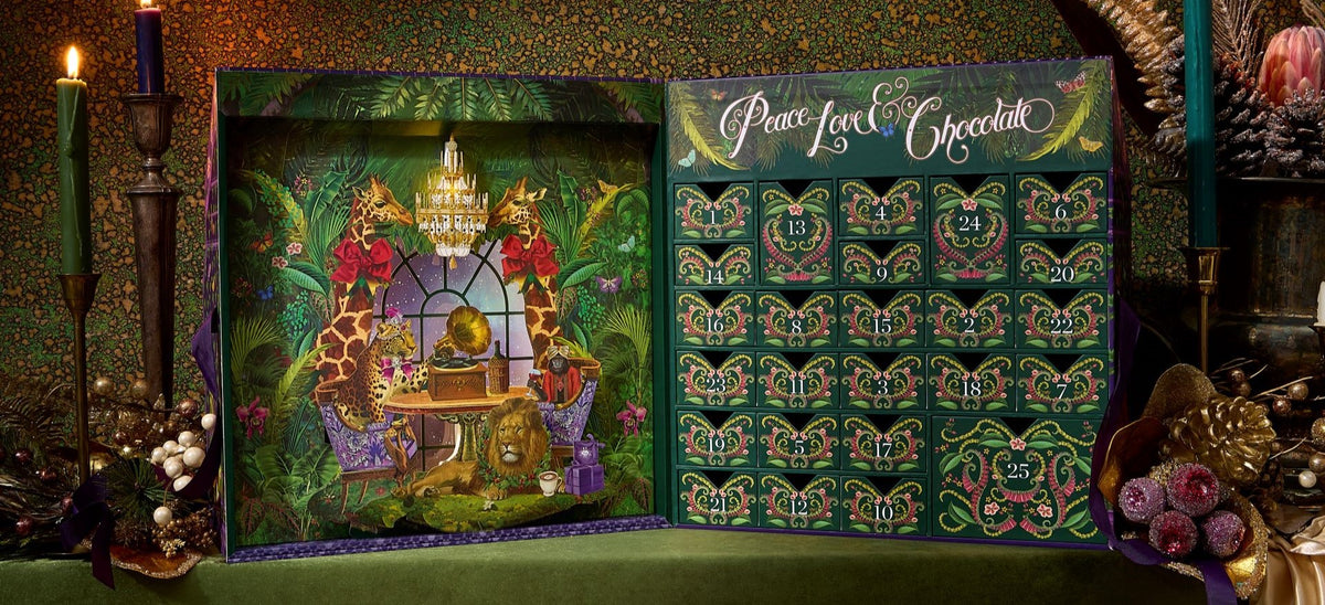 As the days of December unfold, turn the drawers to reveal a wild assemblage of flora, fauna, and haut-chocolat. This is Advent reimagined—an edible journey through a dreamlike greenhouse where every bite is a passport to magic.