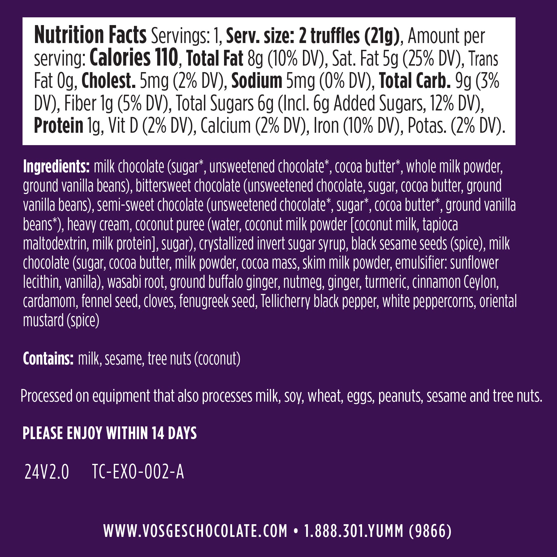 Our first truffle collection, the birth of Vosges®, and the origin of Travel the World through Chocolate™ lies within the Exotic Truffle Collections. After you unravel the purple bow, the wanderlust begins...where do you want to go? Nagaland is vibrant with curry, macadamia nuts beckon to Australia. Relish in Chinese star anise, reminiscent of the forbidden green absinthe of days long past. Open your senses and experience the culture, take a bite and imagine what it is like to stand on the streets of Shanghai. Milk, white or dark chocolate first? We suggest starting with white, but break the rules and follow your instincts. Be a rolling stone...