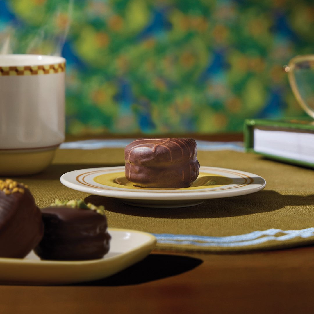 We elevate this classic by enrobing each macaron in deep milk and dark chocolate and crown them with sensorial toppings designed to be savored slowly.