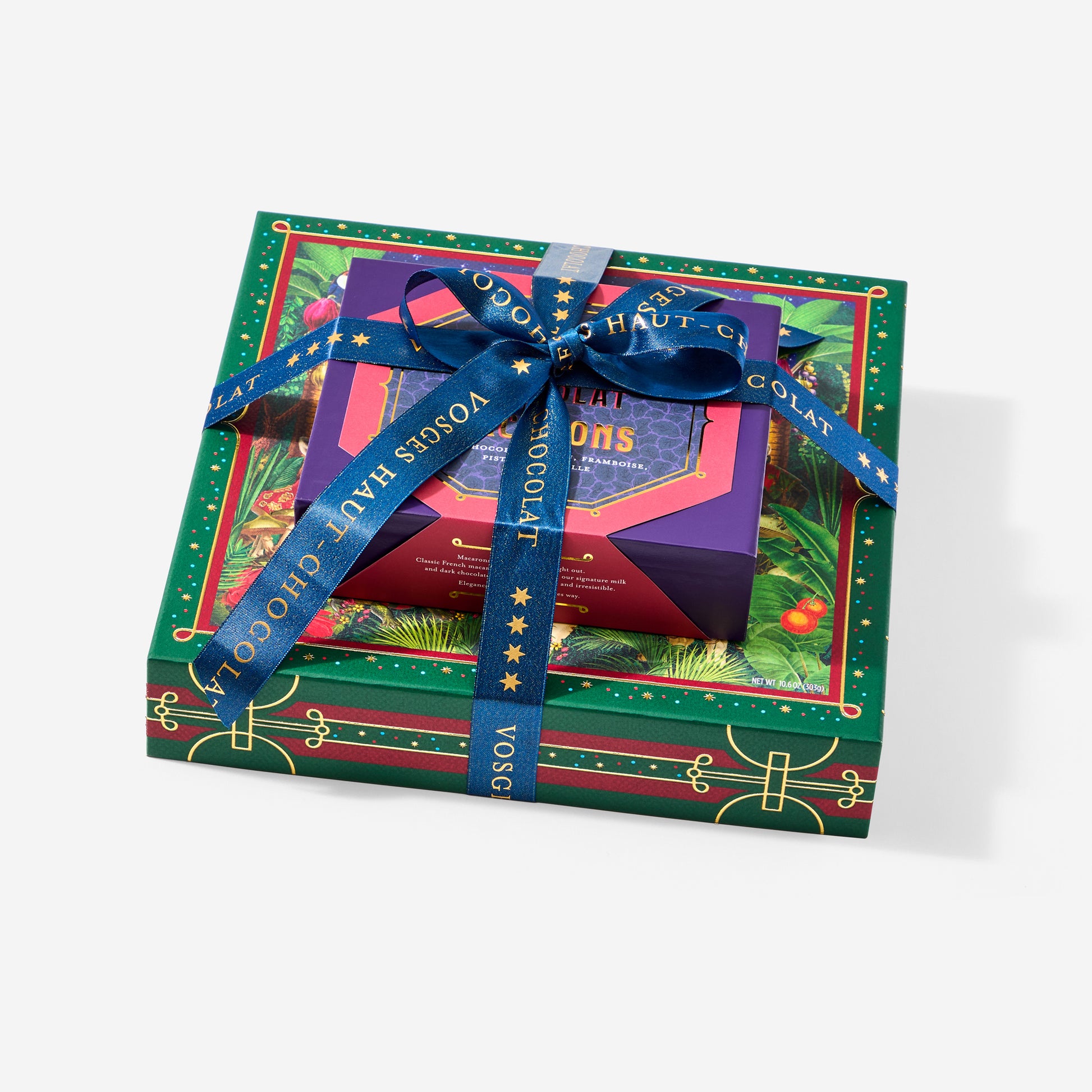 This limited-edition holiday chocolate tower unites two extraordinary creations — our dipped French Macarons and the Wild Cacao Ensemble. Presented in elegant gift boxes and tied with our luxe holiday ribbon, it’s a feast for the senses.
