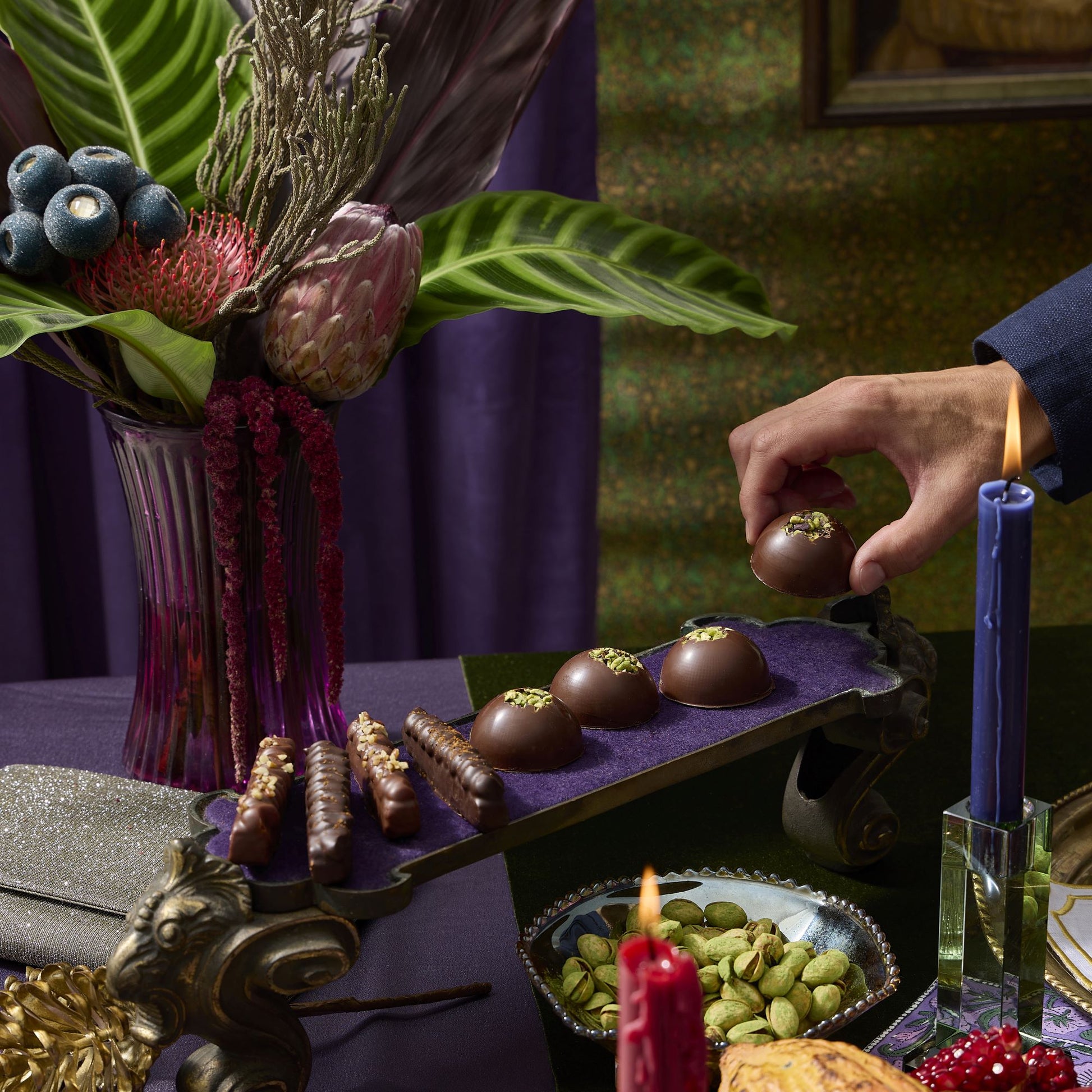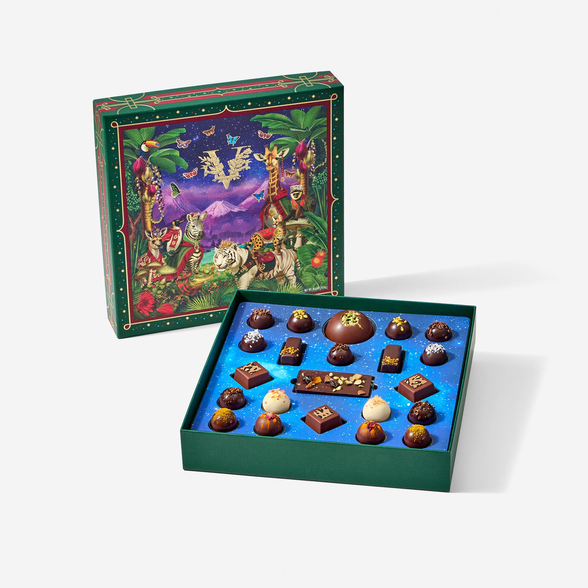 Wild Cacao Ensemble, 22pcs: Our 2025 holiday chocolate ensemble featuring spicy mango caramels, Dubai chocolate bonbons, single-origin cacao, passionfruit truffles and more.