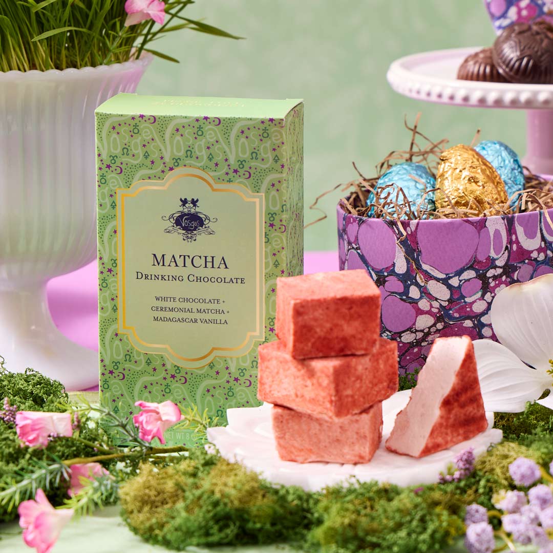 Four housemade strawberry-infused marshmallows- pillowy and light with a hint of sea salt - are coated in vibrant cold-dried strawberry sprinkles for a bright, melt-away finish. Perfect for stirring into our Matcha Drinking Chocolate, skewering for a playful s’more, or savoring on their own, these marshmallows add a touch of sweetness to every spring moment.