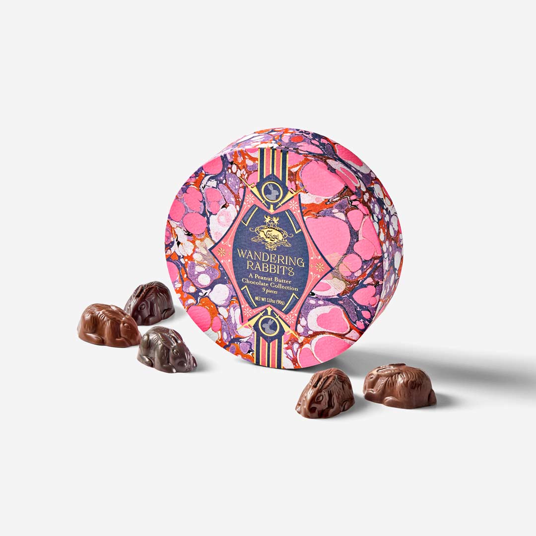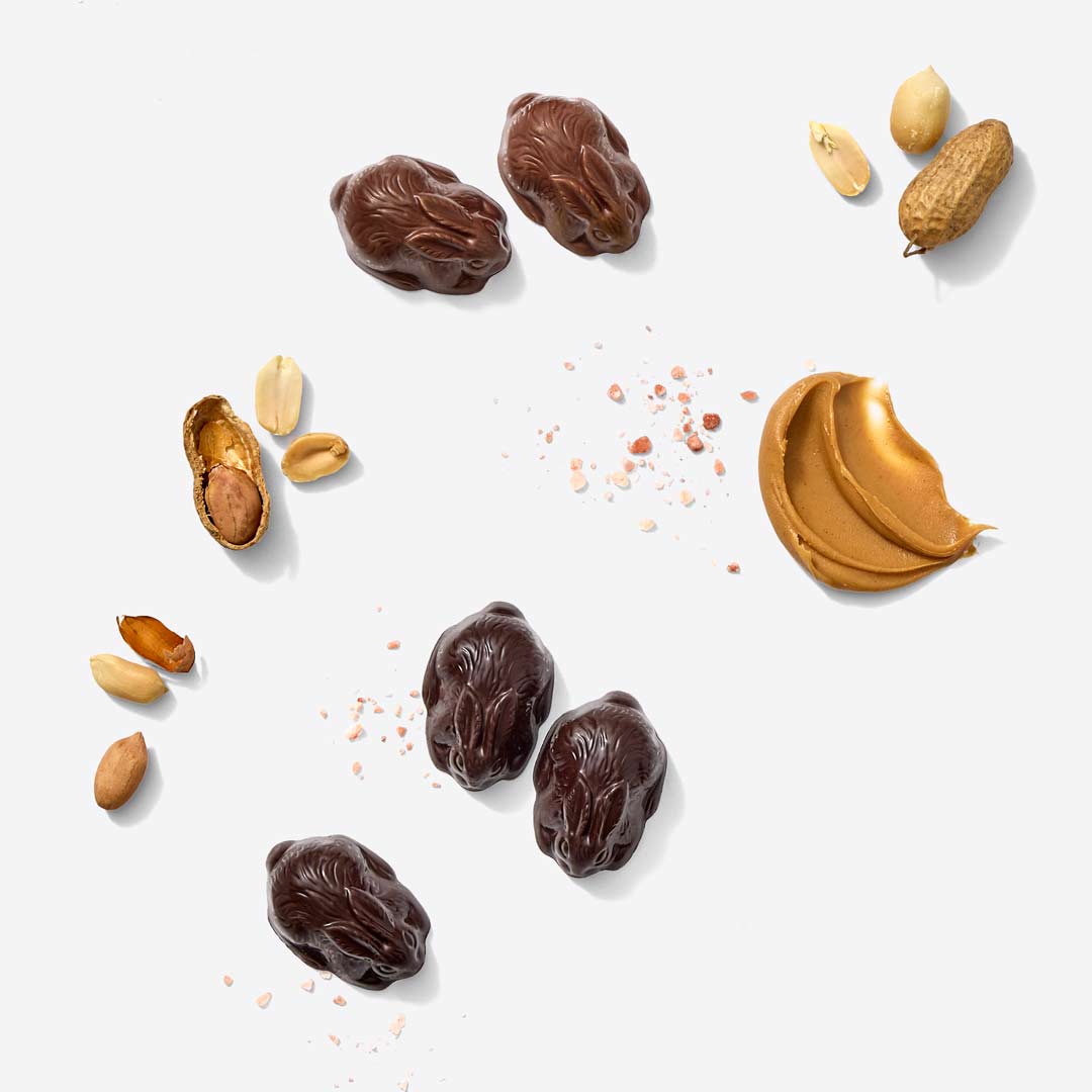 Inside, nine handcrafted rabbits in 45% deep milk chocolate or 62% dark chocolate blended with creamy peanut butter - a timeless pairing that makes the season a little sweeter. Perfect for Easter baskets or scattered across the table, these chocolate bunnies add a touch of whimsy to spring celebrations. Pair them with our Nest of Chocolate Easter Eggs and delight in a timeless spring question: which came first, the bunny or the egg?